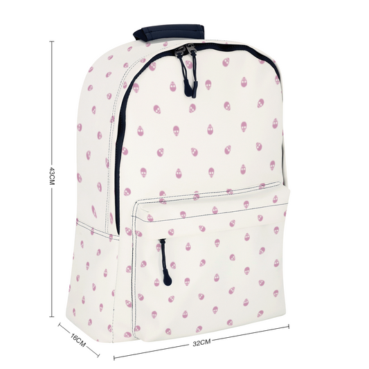 Backpack in White with Fondant Pink Skull Pattern
