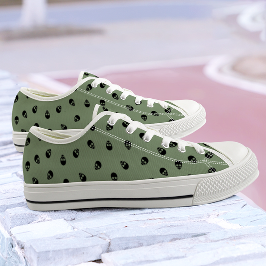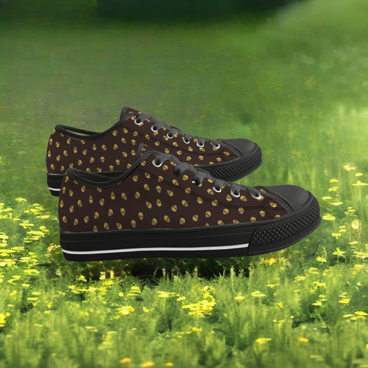Low Top Canvas Sneakers in Dark Oak with Honeycomb skulls