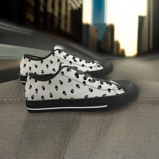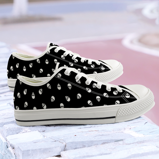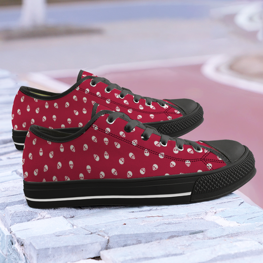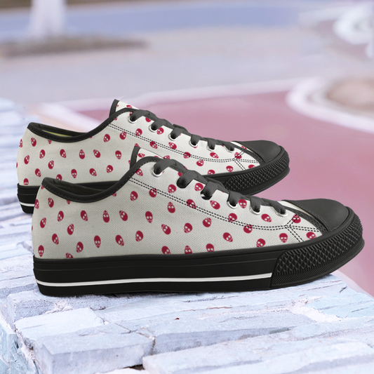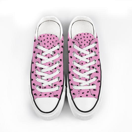 Low Top Canvas Skull Sneakers in Fondant Pink and Black
