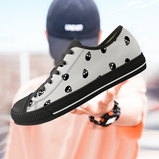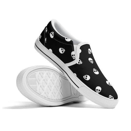 Skull-Stompin' Black Canvas Slip-On Sneakers