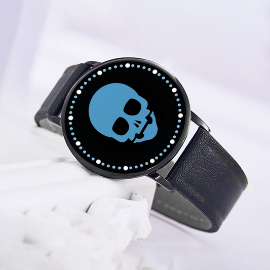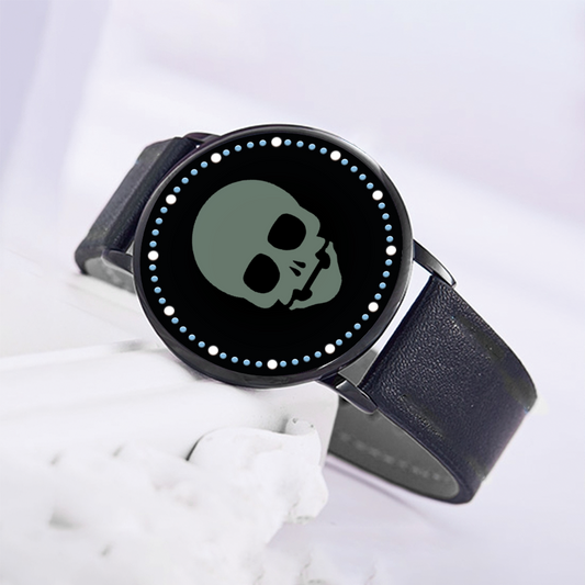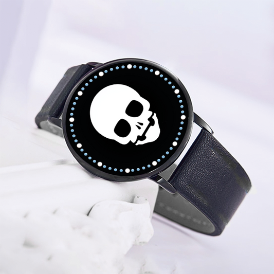 Futuristic Edge: Black LED Touch Screen Watch with White Skull Face