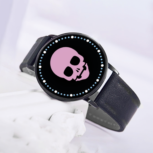 Digital Dare: Futuristic Black LED Watch with Fondant Pink Skull Face