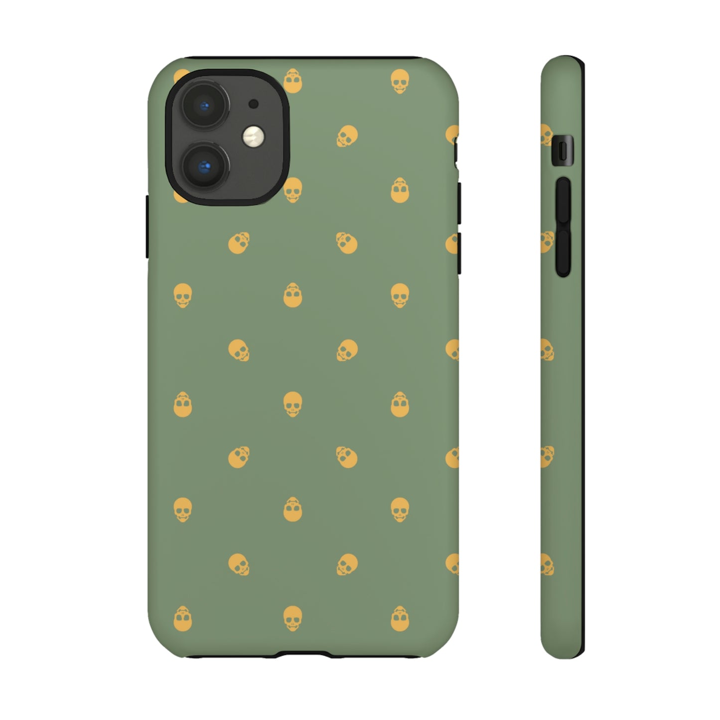 Tough Cases for Iphone, Samsung, Pixel - Sundial Skulls Pattern on Jade Green